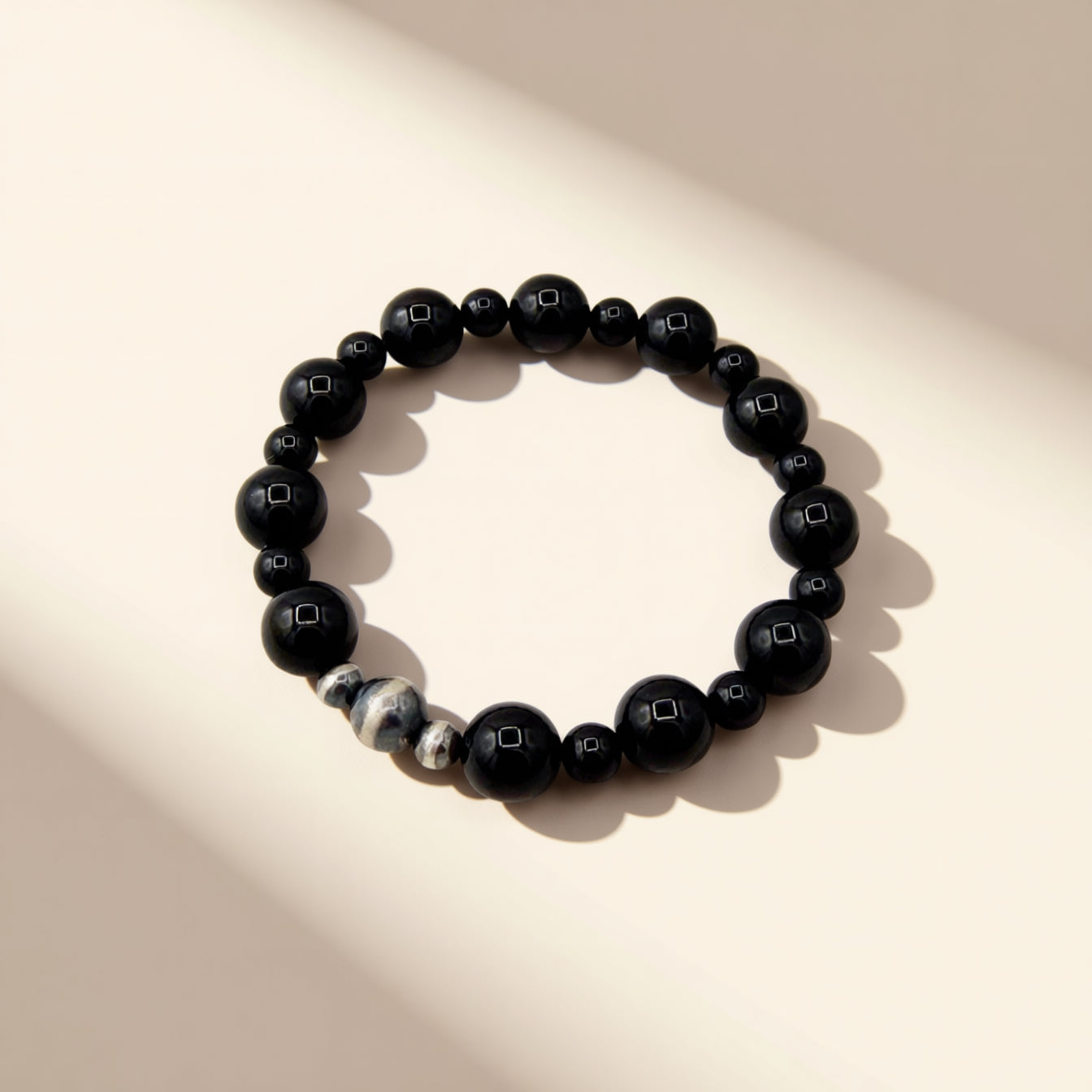Perfect Black Onyx and Navajo Pearl Bracelet