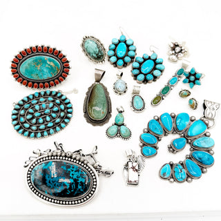 Federico Jimenez Mother of Pearl, Turquoise, and Pearl Dangle Statement Earrings