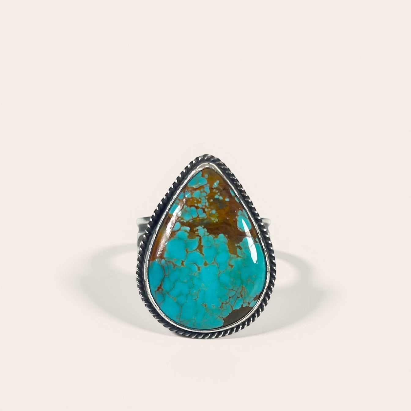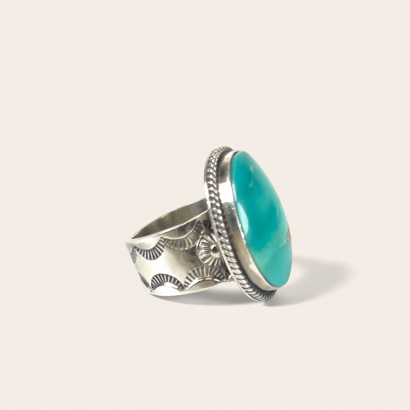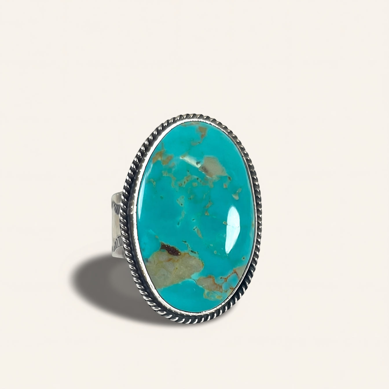 Handcrafted by Andy Cadman, these sterling silver rings feature Pilot Mountain Turquoise in various sizes and shapes.