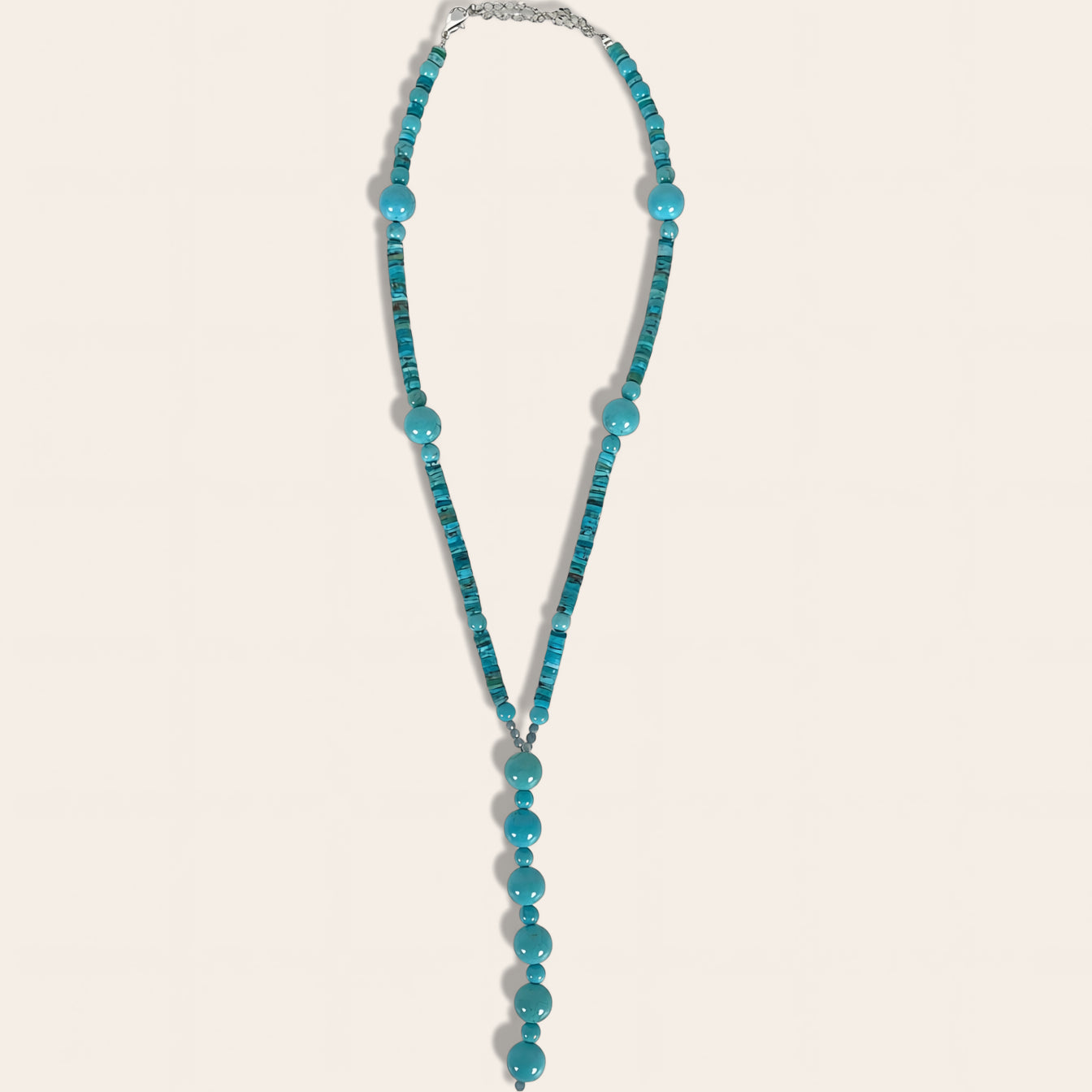 Artisanal Kingman Turquoise & Aquamarine Lariat Beaded Necklace