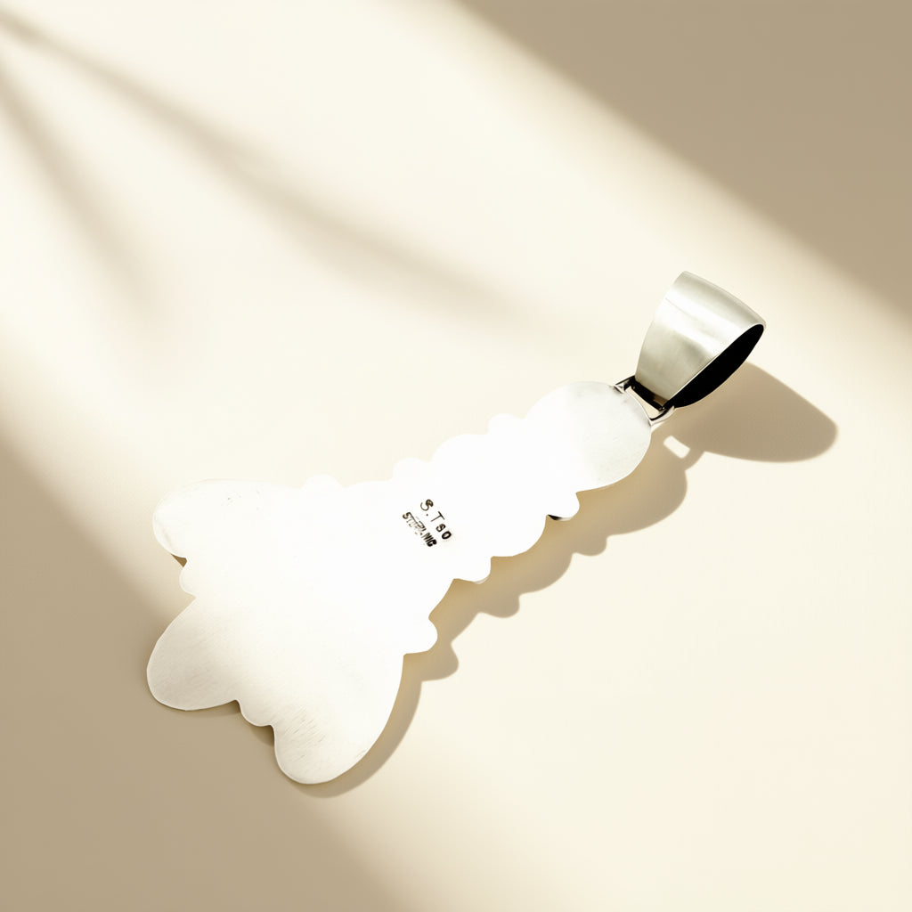 Handcrafted by Sheila Tso, this sterling silver pendant features Royston Turquoise arranged in a cluster and measures approximately 3 inches in length.