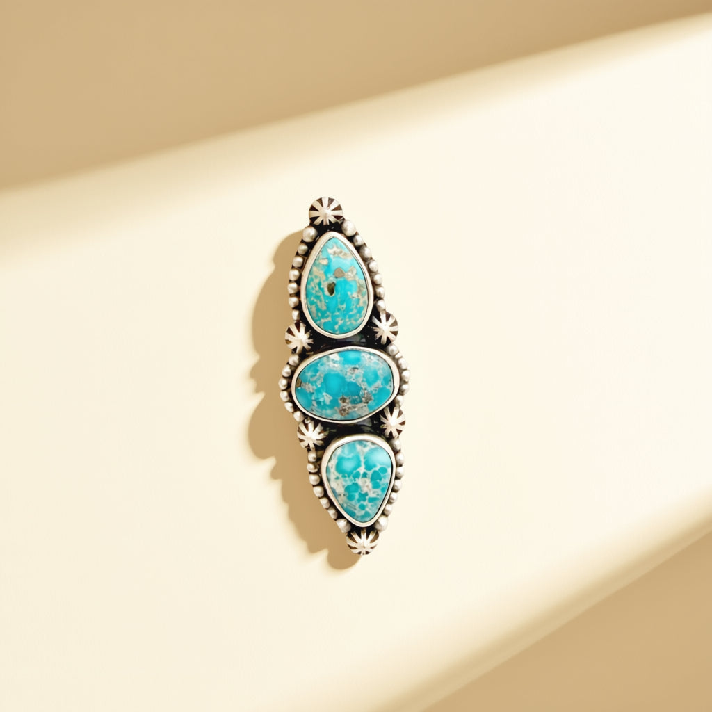 These HJC sterling silver rings feature White Water Turquoise and are adjustable.